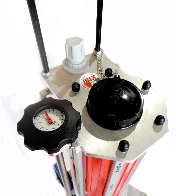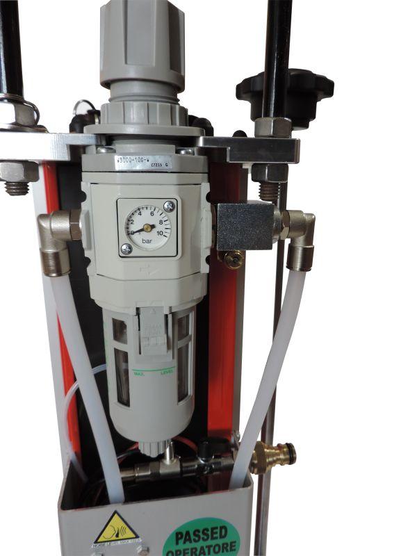 Réglage des agrégatspar le haut: acilitéd’utilisation accrue, poignée ergonomique de grande dimension qui simplifie le réglage précis du mélange micro-abrasif. Manomètre pour mesurer précisément la quantité d’agrégats à utiliser, avec la possibilité de reproduire le dosage micrométrique le plus adapté.