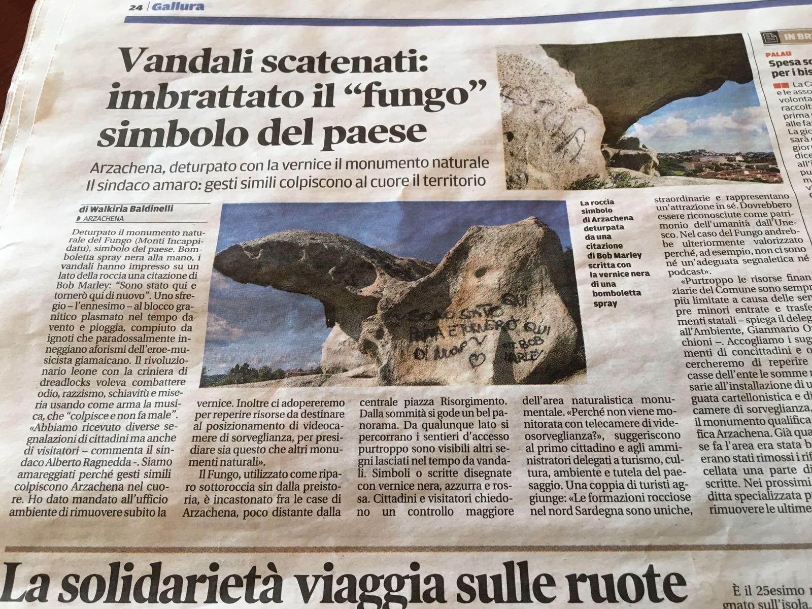 Nei giorni scorsi il "Fungo", monumento naturale simbolo di Arzachena, è stato imbrattato con scritte vandaliche ad opera di ignoti. IBIX Special Cleaning si è offerta per riportare gratuitamente il "Fungo" allo stato originario. ne è nato un piccolo evento che ha coinvolto media e scuole locali. E'stata un'importante occasione per sensibilizzare gli studenti delle zona al tema del decoro urbano, un valore importante per la comunità di cui IBIX è da sempre promotore. Una semplice scritta con una bomboletta spray può rappresentare un grave danno per un monumento, specie per supporti porosi o di pregio storico. E' perciò importante sensibilizzare i giovani a quello che un gesto ingenuo o irresponsabile può comportare in termini di conservazione di un bene, sia per quanto riguarda i costi che occorrerà affrontare per ripristinare il suo aspetto originale (se possibile!).