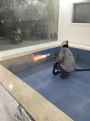Le Polveri per il Rivestimento Termoplastico possono essere applicate tramite spruzzatura a fiamma dal momento che necessitano solo di fondersi, senza aver bisogno di reticolare.